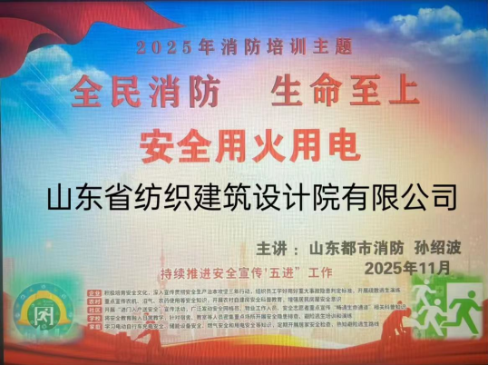 為積極響應(yīng)2025年全國"消防宣傳月"活動號召,11月14日,山東省紡織建筑設(shè)計院有限公司在漢峪金谷A2-5棟辦公區(qū)開展以"全民消防、生命至上——安全用火用電"為主題的消防系列活動。